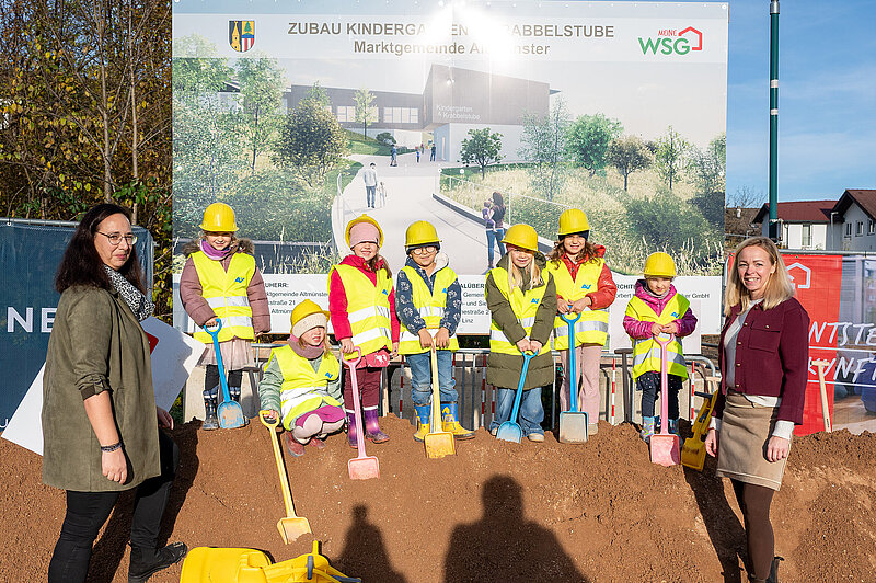 Der moderne Neubau wird künftig Platz für rund 170 Kinder bieten und damit ein wichtiger Schritt zur Erweiterung des Betreuungsangebots in der Marktgemeinde Altmünster sein. Großzügige, lichtdurchflutete Räume, kindgerechte Lern- und Spielbereiche sowie nachhaltige Bauweise stehen im Mittelpunkt des Projekts.